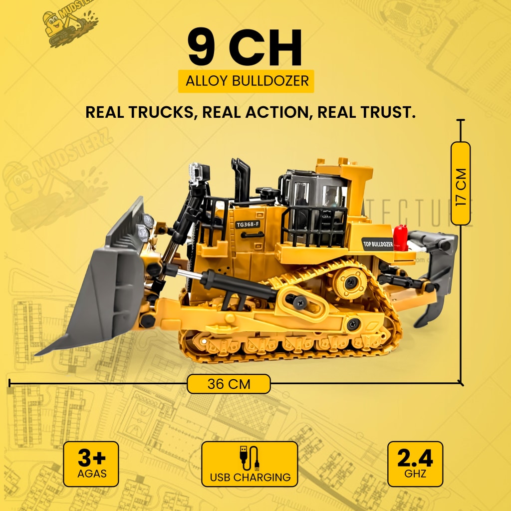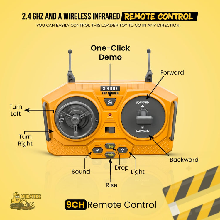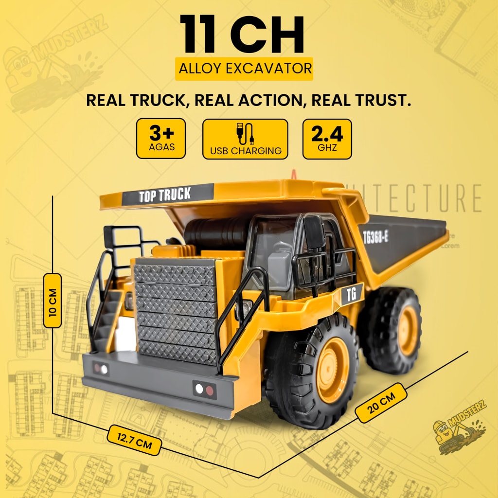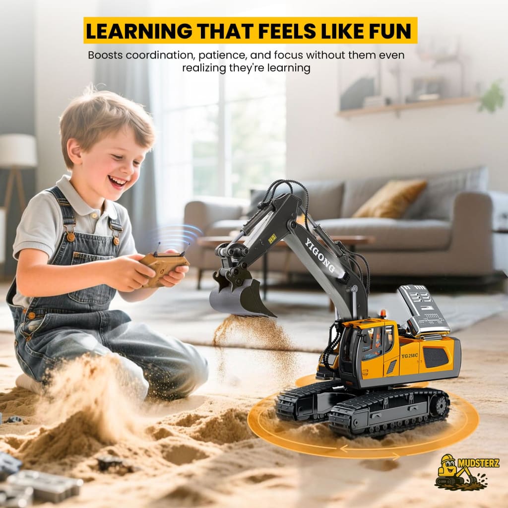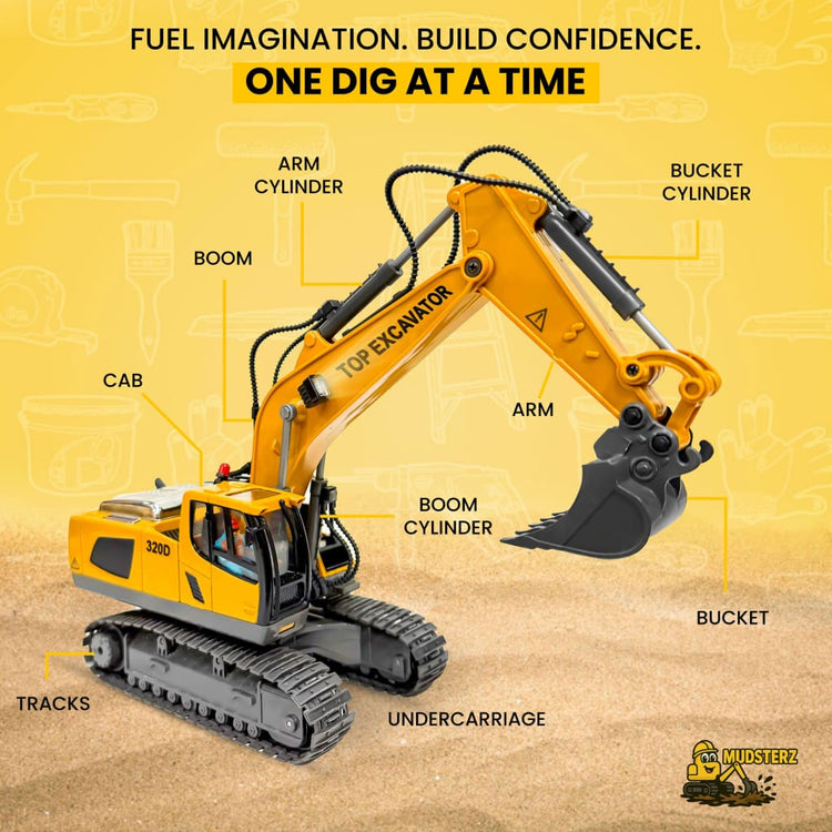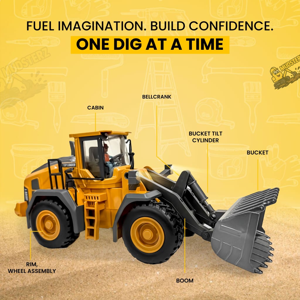Watch Mudsterz™ machines in action as they dig, haul, and bulldoze real dirt, sand, or carpet. LED headlights and authentic engine sounds create an immersive mini-construction experience.